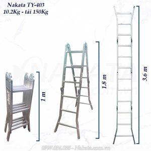 - Thang nhôm gấp đa năng Nakata NKT04C có cấu tạo cứng cáp. Từng chi tiết đều được thiết kế theo thông số Quốc Tế chuẩn.